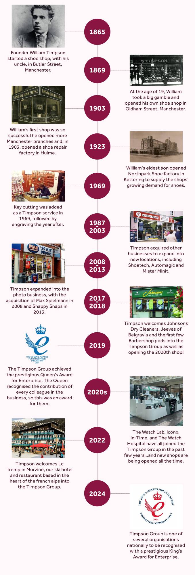 From 1865 to today, here’s a quick timeline of Timpson through the years.